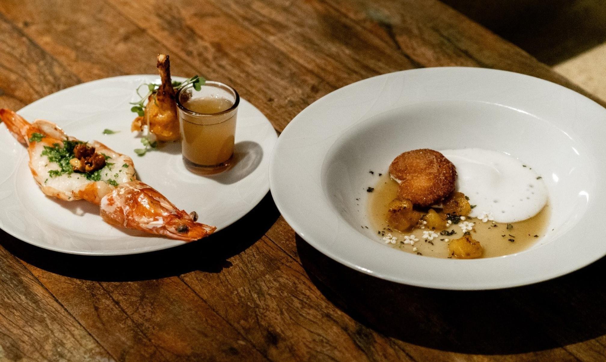 Os dois vão preparar um jantar com quatro etapas que começa com ravioli de galinha d’angola no próprio caldo com foie gras e semente de pequi. O primeiro principal é um black cod (peixe-carvão-do-pacífico) com palmito na brasa, purê ao limão siciliano e pinoli. Em seguida, será servido um prato de porchetta de leitão com mil folhas de alho-poró e cogumelo porcini. A sobremesa da noite será uma Île Flottante (sobremesa clássica com merengue “boiando” sobre creme inglês) de doce de leite com sorbet de jabuticaba e crocante de amêndoa.