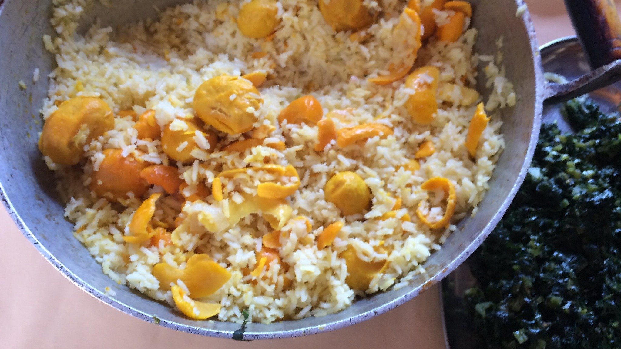Símbolo do Cerrado, o pequi é um fruto de sabor e aroma inconfundíveis: ou você ama, ou odeia. No Mato Grosso, ele é a estrela do arroz com pequi, um prato de cor amarelada vibrante e que perfuma toda a casa durante o preparo.