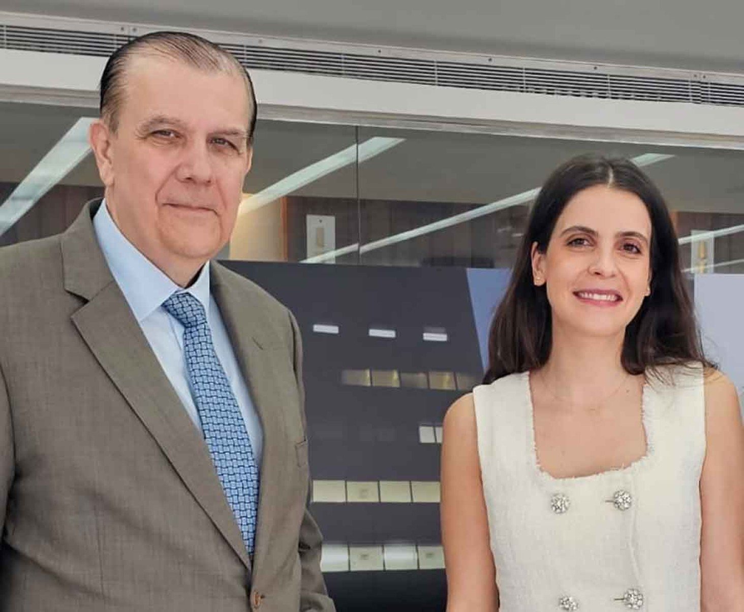 Carlos Ivan Simonsen Leal, presidente da FGV, e a eurodeputada Ana Miguel Pedro crédito: Divulgação