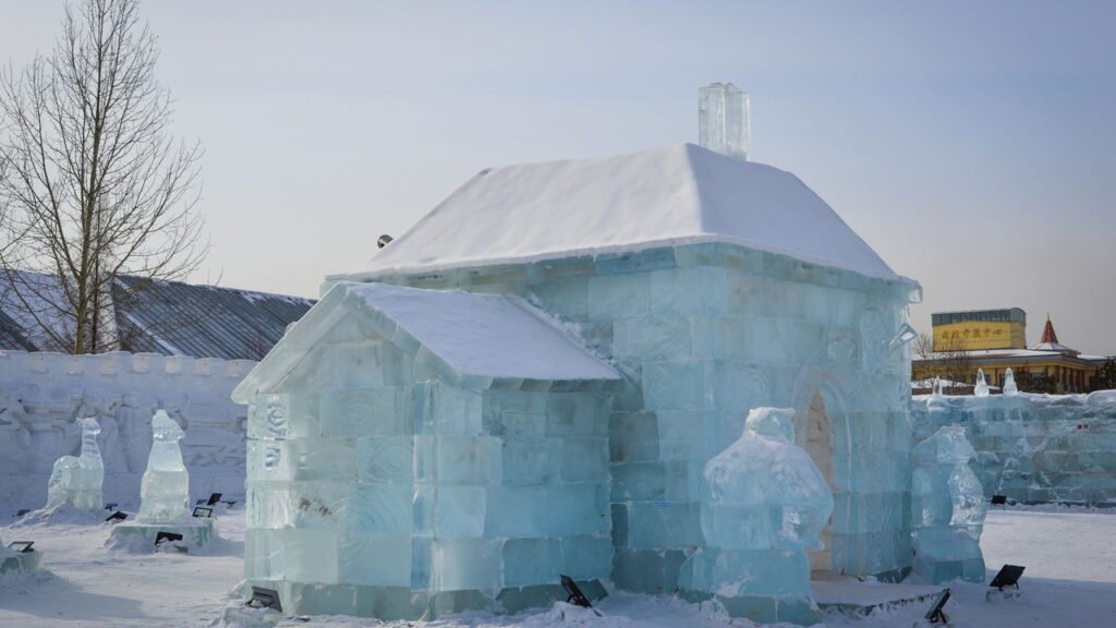 O Festival de Harbin é conhecido por suas esculturas de gelo espetaculares, que cobrem uma área de 600 mil metros quadrados e incluem mais de 100 construções. As esculturas são inspiradas em diversos estilos arquitetônicos, como palácios chineses, igrejas russas e catedrais francesas. As obras de arte são feitas com cubos de gelo retirados do rio Songhua, que congela em novembro, tornando cada peça única.