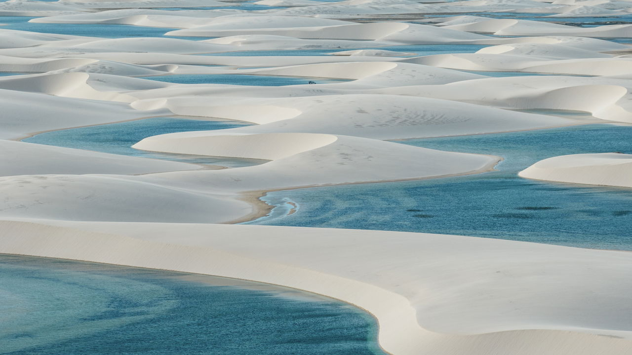 Os Lençóis Maranhenses, situados no estado do Maranhão, são famosos por suas vastas dunas de areia branca intercaladas por lagoas de água doce. Este fenômeno natural ocorre durante a estação chuvosa, criando um cenário que parece de outro mundo.