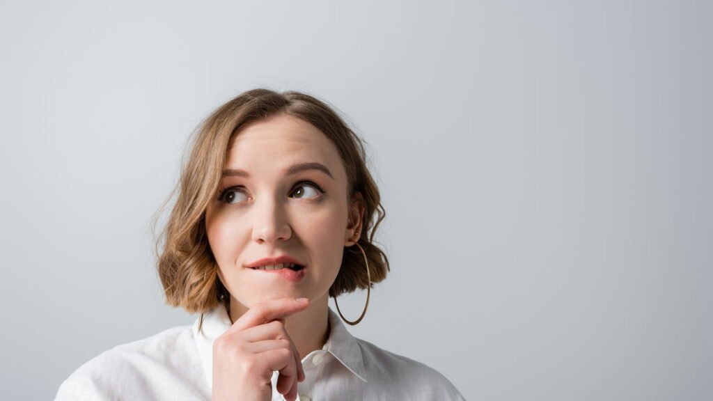 Mulher mordendo os lábios – Créditos: depositphotos.com / HayDmitriy