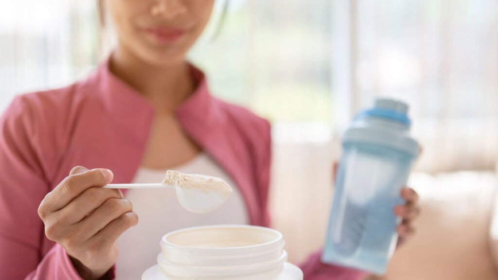 Mulher servindo creatina – Créditos: depositphotos.com / BongkarnGraphic