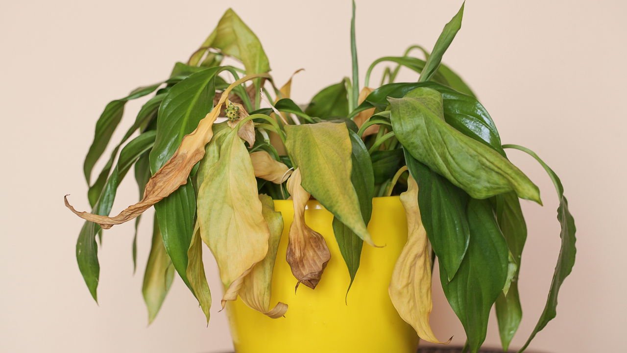Folhas amareladas, solo constantemente úmido e cheiro de mofo são sinais de excesso de água. - É melhor regar por cima ou por baixo?