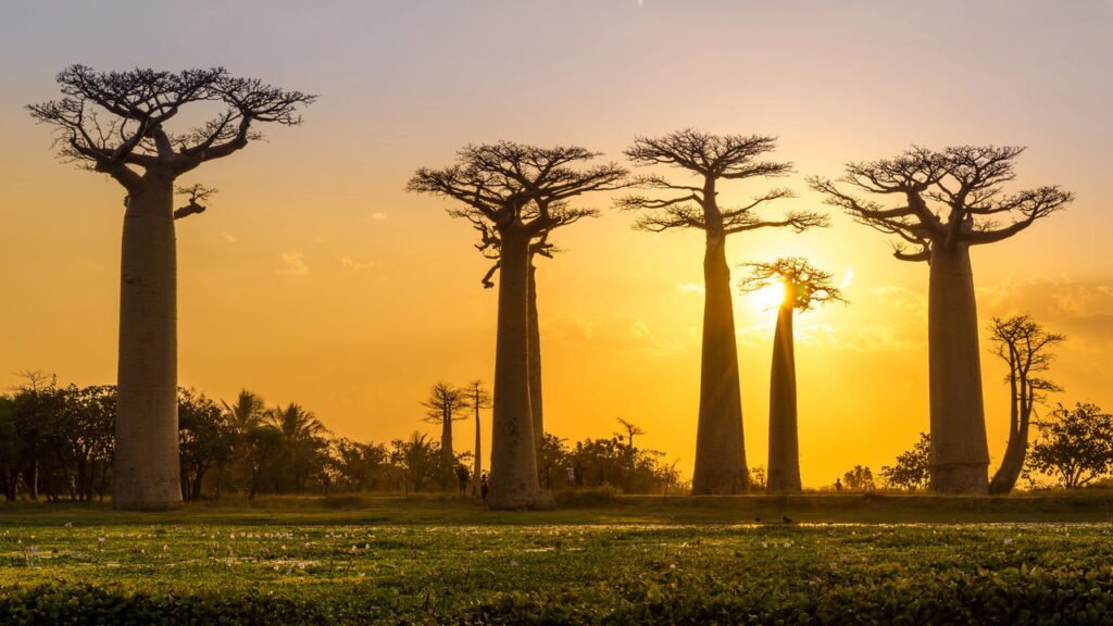 Além de sua função ecológica, o baobá é crucial para a nutrição e medicina das comunidades africanas ao seu redor. O fruto do baobá, conhecido como “pão de macaco“, é uma fonte considerável de nutrição. Sua polpa ácida é rica em vitamina C, antioxidantes, cálcio, ferro e potássio. Da mesma forma, as folhas e a casca desta árvore são amplamente utilizadas para finalidades medicinais e práticas tradicionais, revelando sua importância cultural e utilitária. A flor do baobá, que desabrocha à noite com um perfume doce, atrai polinizadores noturnos, como os morcegos, desempenhando um papel fundamental na reprodução da planta. Além disso, em determinadas regiões, a sombra generosa do baobá serve como ponto de encontro para comunidades, consolidando sua presença nas tradições orais e festividades locais.