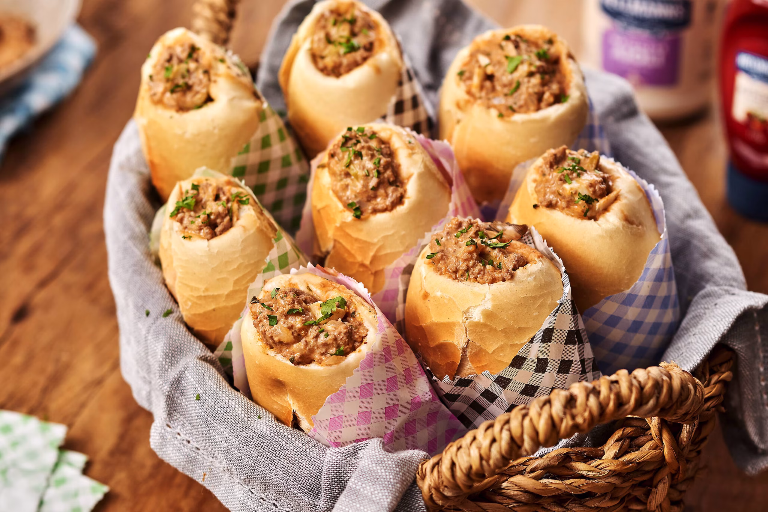 - Pães franceses frescos, ideais para acomodar o recheio sem esfarelar.