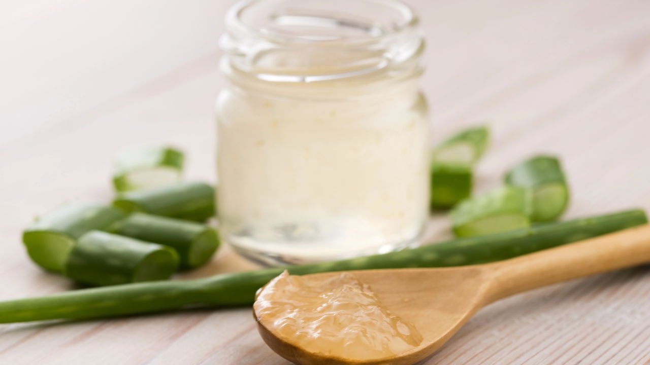 - Lave uma folha de babosa para eliminar impurezas e, com cuidado, retire o gel transparente da polpa interna.