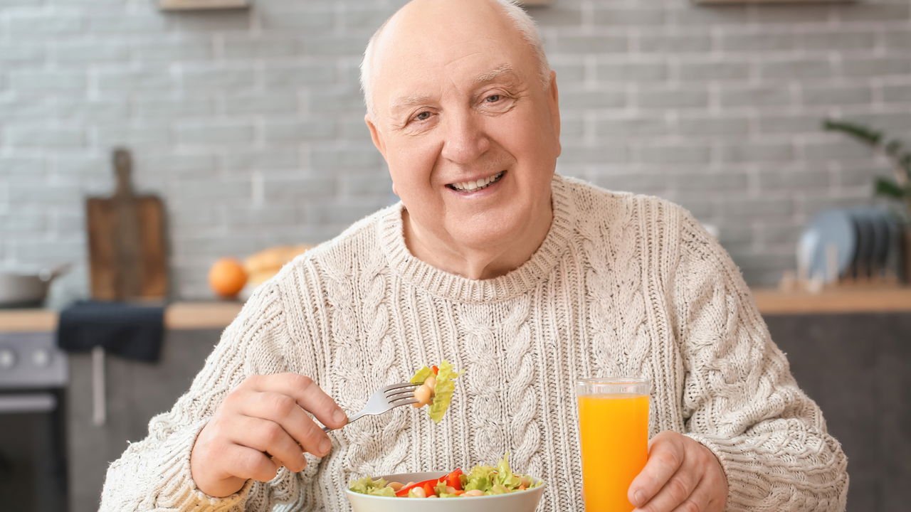 Idoso comendo um lanche saudável - Créditos: depositphotos.com / serezniy