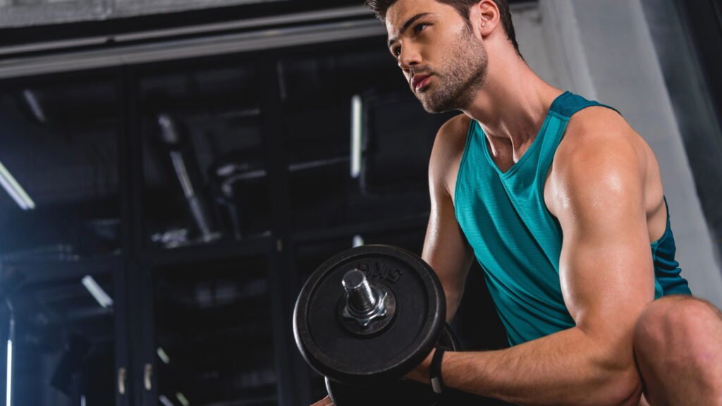 Homem realizando treino com halter – Créditos: depositphotos.com / VitalikRadko