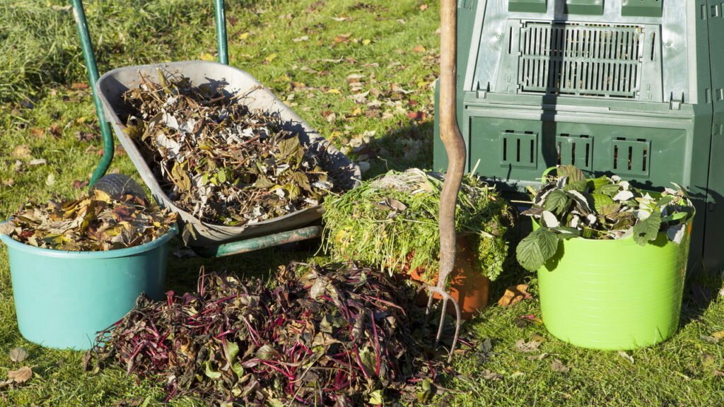Não deixe o composto muito úmido ou seco. Mantenha a umidade similar à de uma esponja espremida. Caso sinta odores desagradáveis, ajuste a proporção entre resíduos verdes e marrons.