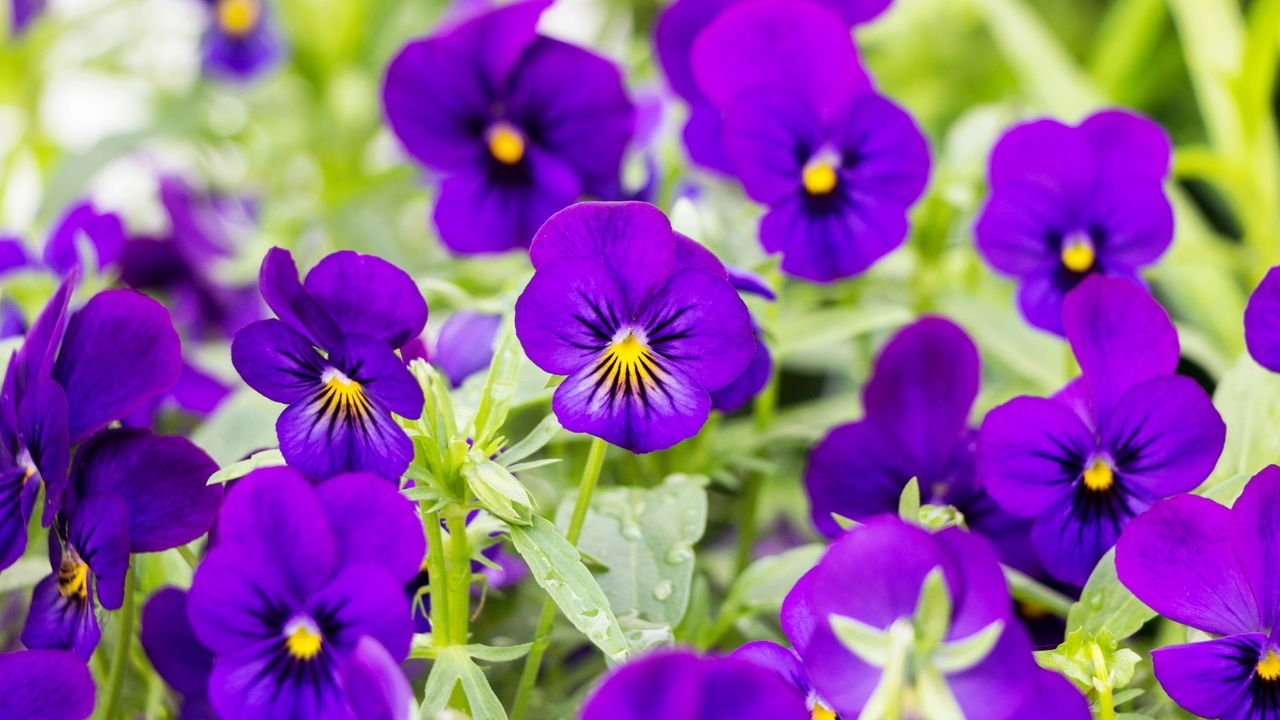 Pensamentos encantam com suas flores vibrantes em tons de roxo, amarelo e branco. Eles florescem do final do inverno até a primavera, alegrando canteiros e varandas.