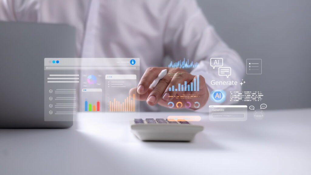 Homem de negócios visualizando gráficos hologramáticos saindo de calculadora – Créditos: depositphotos.com / UnImages