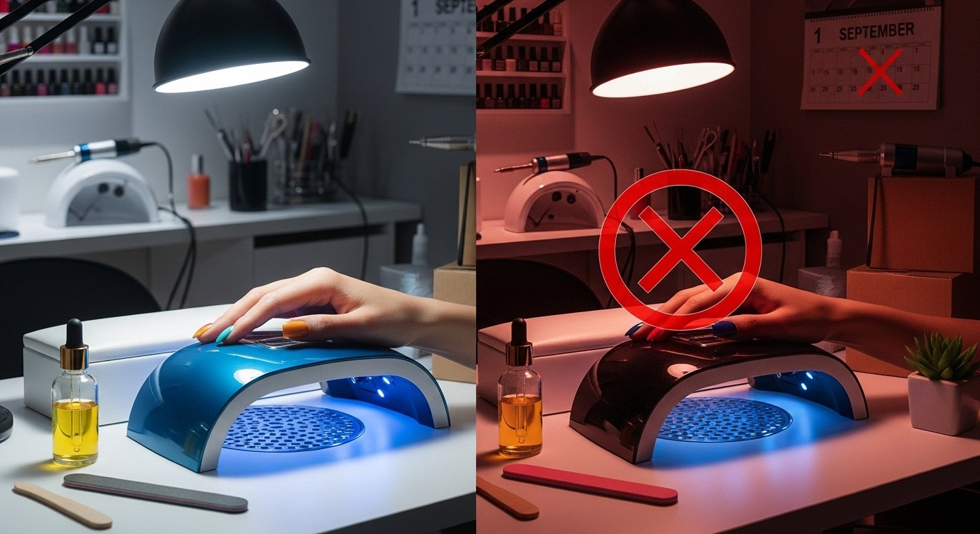 Garanta que os equipamentos de secagem (lampadas UV e LEDs) sejam atualizados ou substituídos por modelos adequados à legislação. A troca e escolha de dispositivos certificados já está acontecendo em vários salões, principalmente nas principais cidades da Itália.