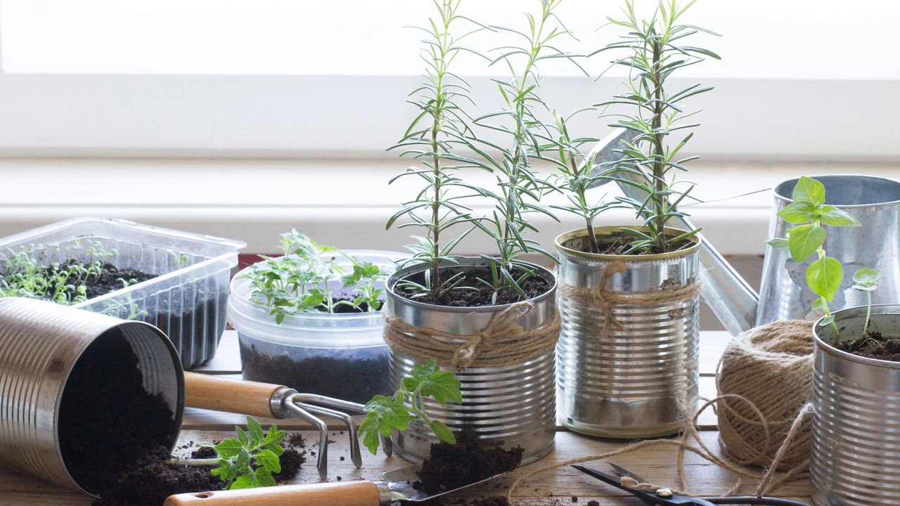 As latas são mais adequadas para plantas pequenas, que não necessitam de raízes profundas. Temperos, ervas e algumas flores se adaptam bem a esse tipo de recipiente limitado.
