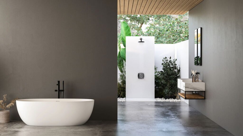 Além da estrutura, os materiais e acabamentos também estão evoluindo. A resina, a pedra natural e o porcelanato contínuo estão gradualmente substituindo o clássico esmalte das banheiras. Cores quentes e tons terrosos são predominantes, criando um ambiente relaxante reminiscentes de um spa dentro de casa. Ainda, a tecnologia de superfícies antibacterianas, já amplamente utilizada na Europa, começa a chegar ao Brasil, garantindo mais saúde e facilidade na limpeza.