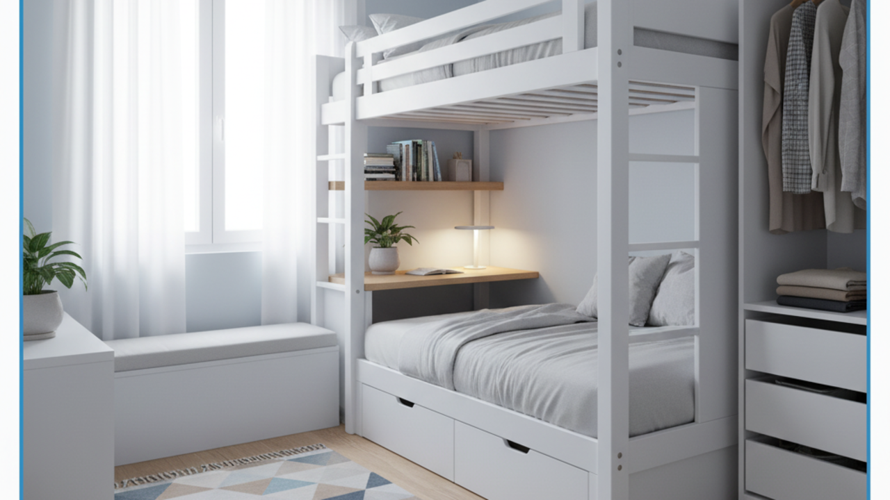 O começo de tudo é a otimização do espaço. Pense na escolha de móveis multiuso, como camas com baú ou beliches que liberem o chão. Para quem vive em grandes cidades como São Paulo ou Rio de Janeiro, essa estratégia ajuda ainda mais, pois espaços são geralmente menores. Essa estratégia ajuda a deixar tudo no lugar e liberar mais área para circulação.