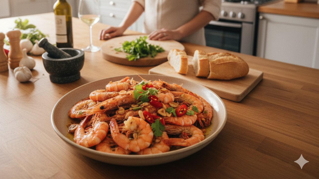 - Desfrute de uma autêntica experiência culinária espanhola com seu camarão ao alho.