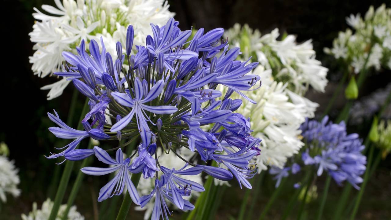 As serras fluminenses de Teresópolis e Petrópolis estão enfeitadas de canteiros azulados e mesmo no frio da Serra Gaúcha essa flor africana vai bem. As flores dessa espécie, originária do sul da África, surgem no final da primavera e início do verão, sendo ainda mais abundantes quando a touceira é limitada por um vaso ou podada de forma regular. O agapanto pode chegar a 1,2 m de altura e ocupar até um metro de largura, com florações azul, branca ou roxa, em formato de buquê. Suas folhas são finas e longas, e o cultivo é indicado para bordas de muros ou definição de canteiros altos. Mesmo em solos pobres, essa planta resiste bem, embora prefira solo rico em matéria orgânica e sol pleno.