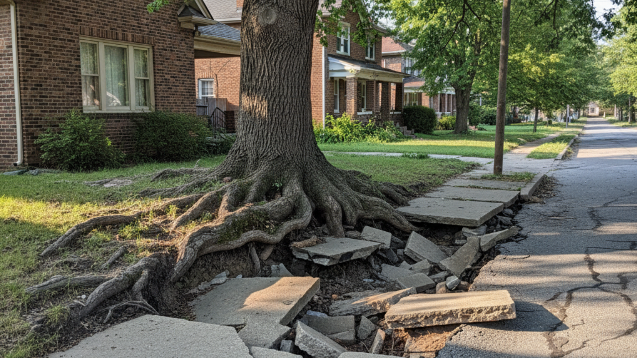 Algumas espécies possuem raízes extensas e vigorosas, capazes de comprometer fundações, calçadas e tubulações. Figueiras (Ficus spp.) são notórias por suas raízes agressivas, que buscam água e se expandem rapidamente, podendo causar rachaduras e danos estruturais significativos.