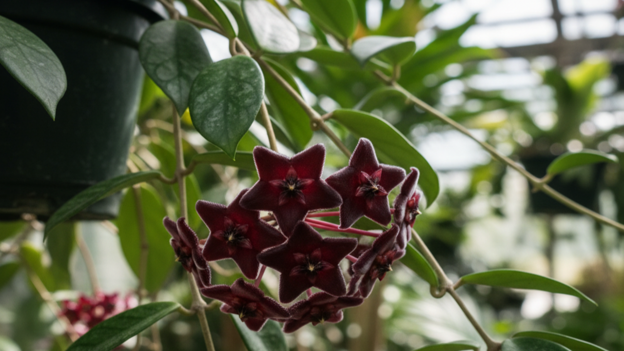 A flor-de-cera negra, conhecida cientificamente como Hoya Publicalix Dark Red, encanta com suas folhas espessas e flores estreladas de tons bordô intenso. Originária do Sudeste Asiático, essa planta exótica é uma escolha elegante para ambientes internos e jardins tropicais, oferecendo charme e sofisticação.