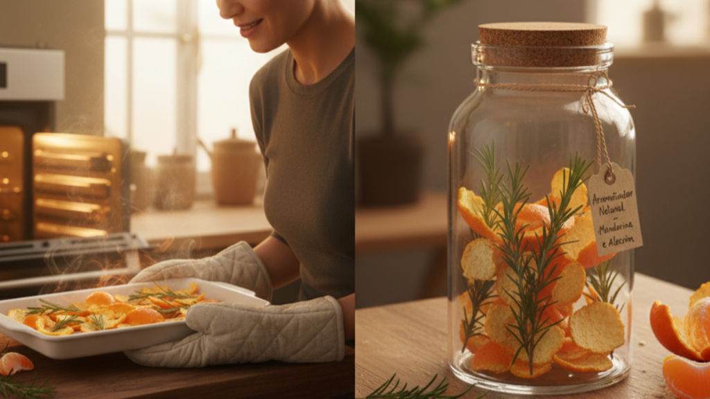 Ao descascar uma tangerina, é comum descartar a casca por achar que não possui utilidade, mas existe uma aplicação interessante e pouco conhecida: assar cascas de tangerina com alecrim para perfumar ambientes de forma natural, ajudando a eliminar odores desagradáveis sem recorrer a aromatizantes industriais.