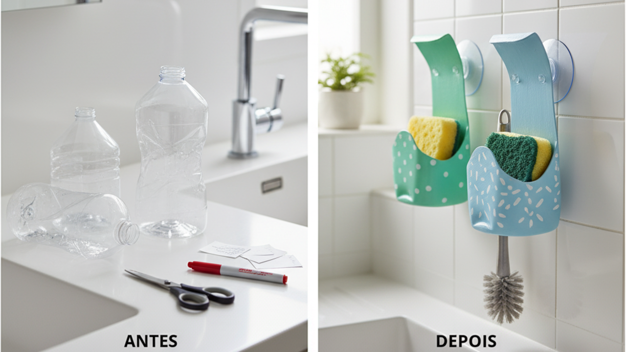 Além de suportes de esponja, é possível dar novas funções para frascos de shampoo, criando desde organizadores de mesa até brinquedos para crianças. Ao observar o objeto por diferentes perspectivas, surgem diversas possibilidades de reaproveitamento.