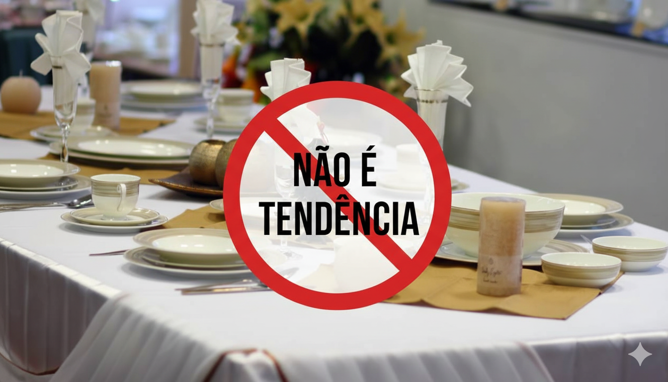 Os metálicos, como o dourado envelhecido, cobre e bronze, adicionam um brilho sutil e sofisticado à mesa. O segredo está em utilizá-los de maneira equilibrada, sem excessos, para um efeito moderno e elegante.