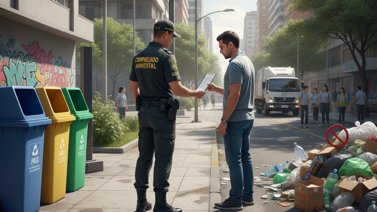 A Lei 1259 de 2008 introduziu o auto de infração ambiental (“comparendo ambiental”) na Colômbia como um instrumento educativo e punitivo, incentivando o correto descarte de resíduos. Empresas e cidadãos podem ser multados em caso de descumprimento das regras de manejo de resíduos.