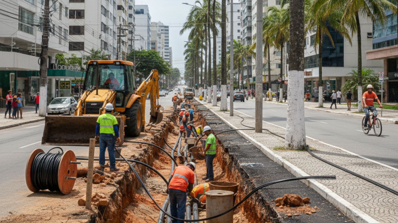 Uma mudança estrutural significativa está prestes a transformar o cabeamento aéreo para subterrâneo, movimentando o setor de infraestrutura urbana e prometendo modernizar, além de tornar mais seguras e organizadas as áreas urbanas. Essa iniciativa foi oficializada em 6 de novembro no Diário Oficial e já tem como exemplo concreto a ação da Prefeitura de Guarujá, no litoral de São Paulo, que sancionou a Lei nº 5.357, determinando a instalação subterrânea de toda a fiação da cidade, com prazo de cinco anos para adaptação.
