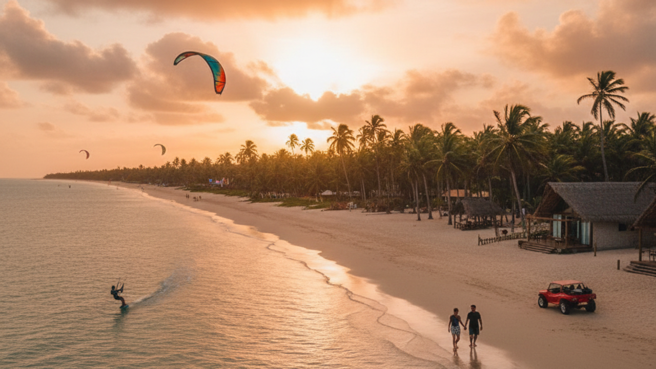 Para quem deseja relaxar, há opções como caminhadas tranquilas à beira-mar, passeios de buggy e momentos de paz à sombra dos coqueiros. Os dias costumam ser ensolarados e o pôr do sol é sempre um espetáculo à parte.