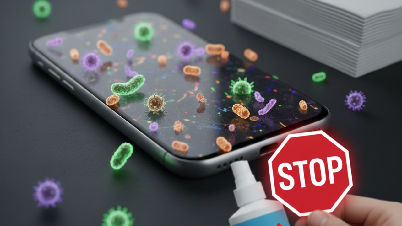 Limpar o telefone é essencial, mas o uso de toallitas úmidas antibacterianas pode ser prejudicial. Esses produtos possuem substâncias que podem danificar o revestimento oleofóbico da tela, o qual protege contra marcas de dedos e sujeira. Segundo Alessandro Gazzo, especialista em limpeza da Emily’s Maids of Dallas, essa camada protetora é delicada e sensível a produtos abrasivos.