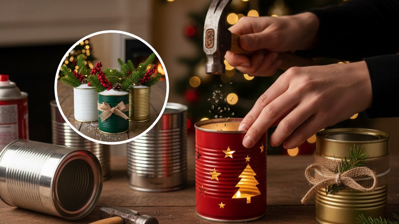 Saiba como transformar latas em elegantes centros de mesa de Natal
