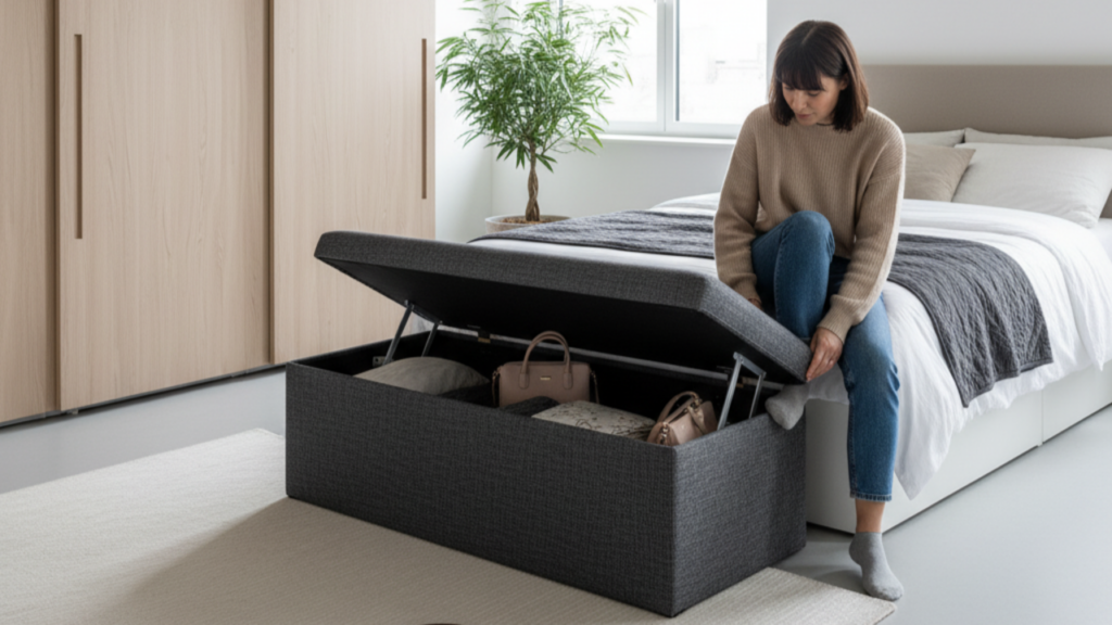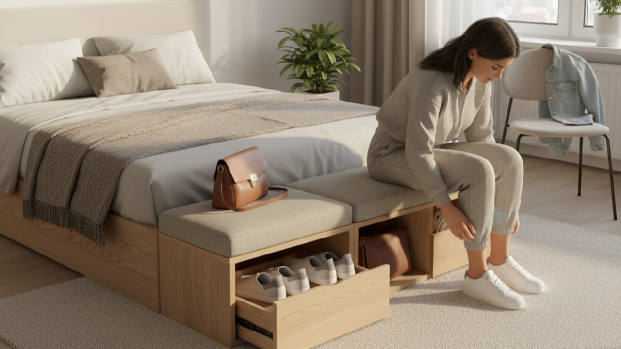 Banco sapateira aos pés da cama: por que é uma alternativa aos móveis tradicionais?