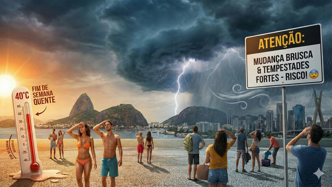 Durante a próxima semana, o Sudeste do Brasil passará por uma mudança climática marcante: após um período de calor extremo, a chegada de uma frente fria trará queda nas temperaturas e aumento de chuvas e tempestades na região.