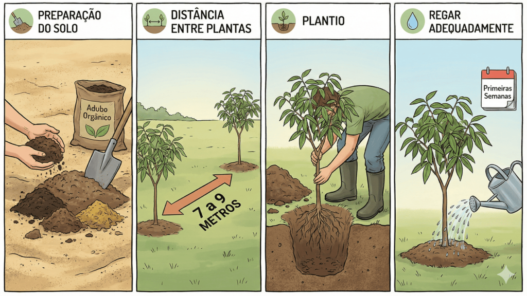Ao preparar o terreno, alguns cuidados são fundamentais e ajudam a garantir o bom desenvolvimento da planta. Confira as principais etapas do plantio: