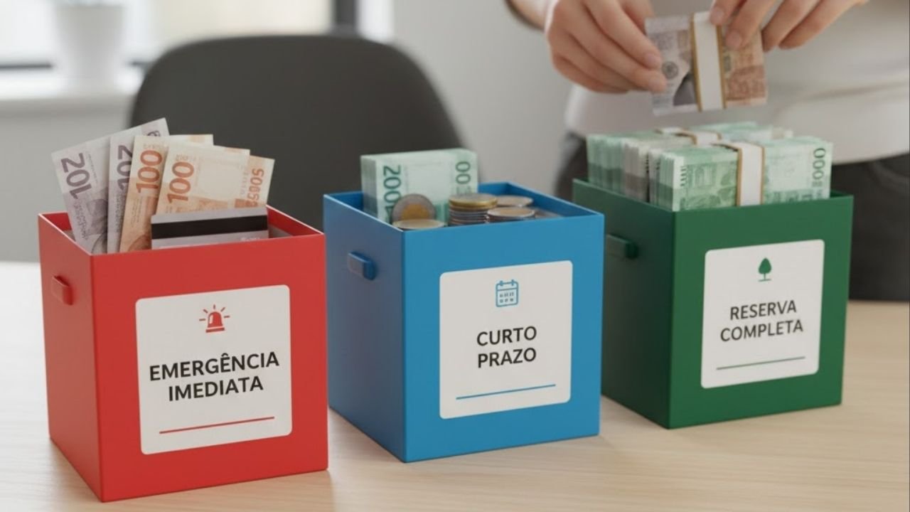 - Caixa 3 – Reserva completa: 6 meses ou mais de gastos, investida em produtos seguros com melhor rendimento, como CDBs pós-fixados ou fundos conservadores.