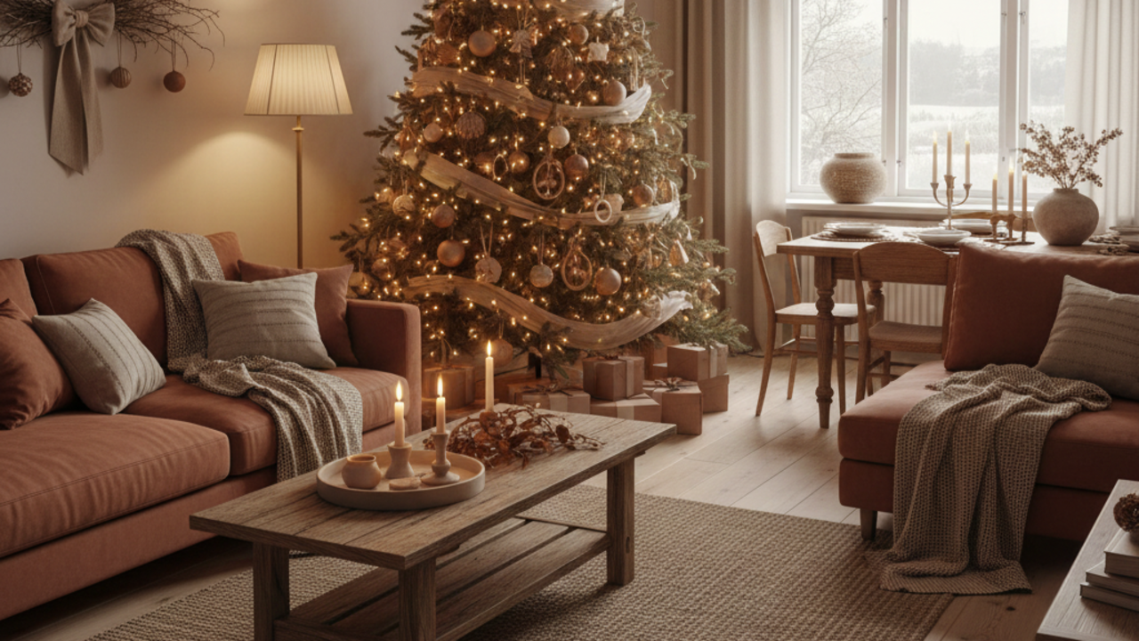 Decoração de Natal 2025 valoriza tons terrosos e sensação de refúgio