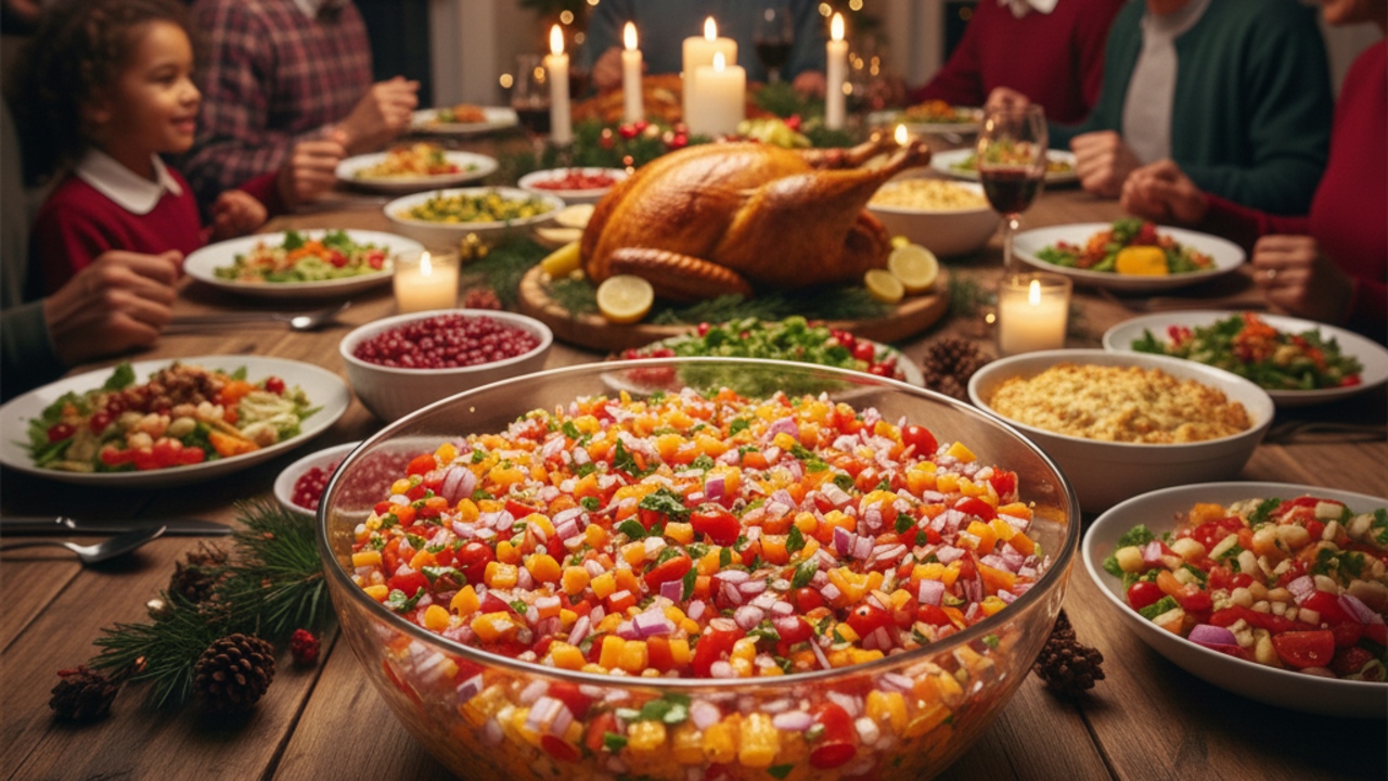Sabe aquele prato simples que costuma passar batido na ceia? Com um vinagrete especial de Natal, ele pode virar a estrela da mesa. A versão com tangerina ou mexerica foge totalmente do básico, é prática de preparar e combina com quase tudo: peru, frango assado, churrasco, peixe grelhado e até feijoada. É aquele toque fresco que quebra a gordura dos pratos mais pesados e deixa cada garfada muito mais gostosa.