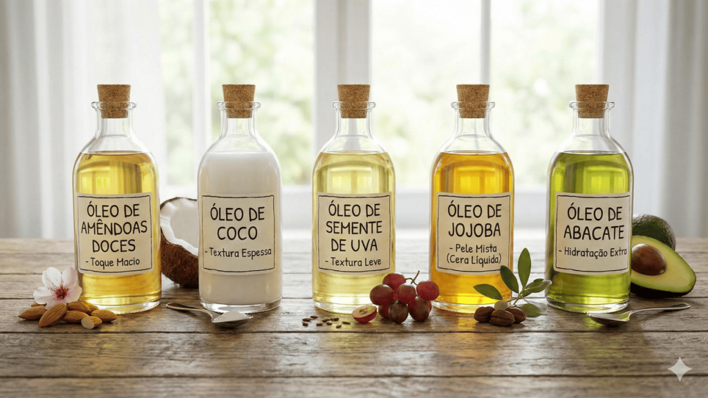 Ao falar em óleos corporais naturais que substituem hidratantes comuns, alguns tipos se destacam pela versatilidade e presença no dia a dia. A escolha ideal depende do tipo de pele, da textura desejada, do clima e da região do corpo em que serão aplicados, variando de opções mais leves a fórmulas mais densas.