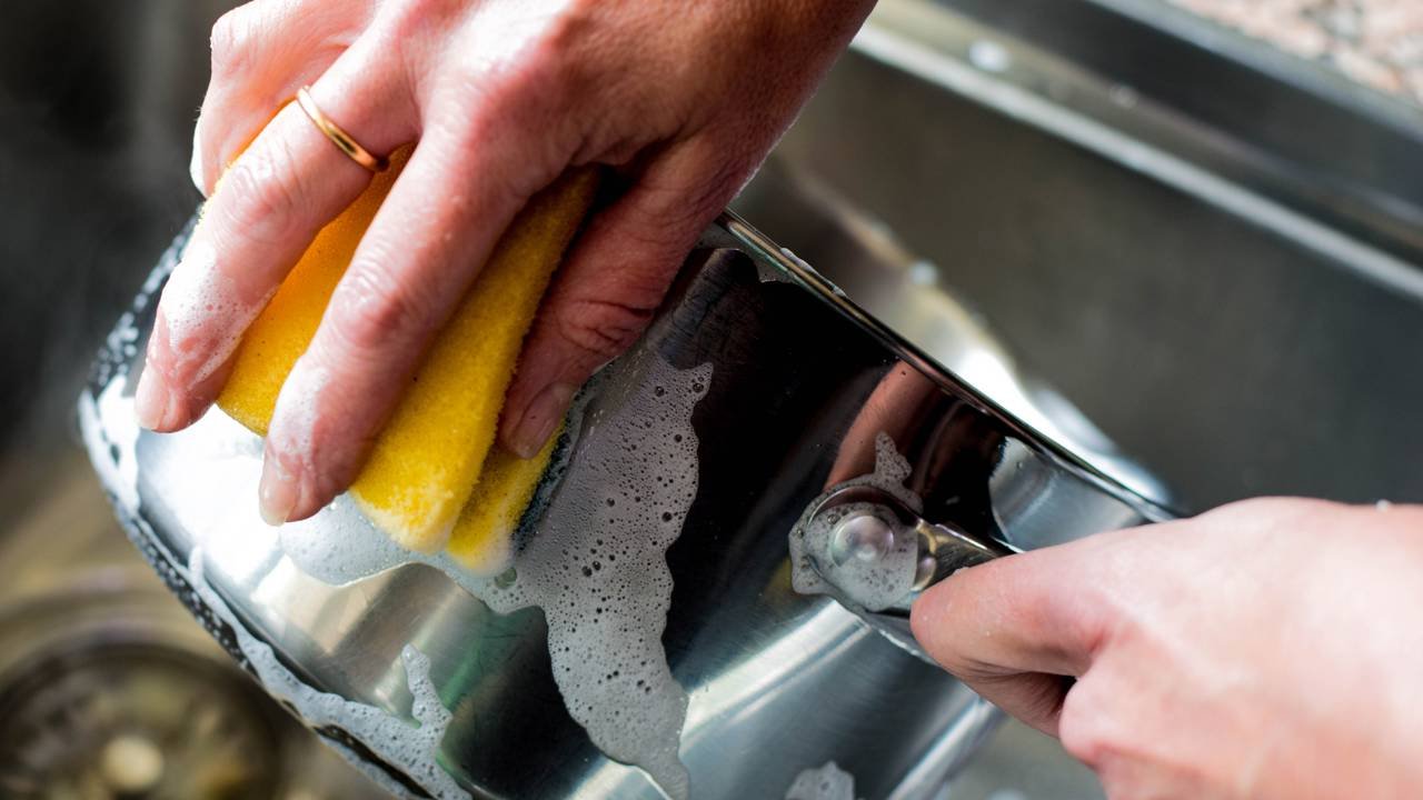 Após a fervura, basta deixar a água descansar por dois minutos e esfregar com uma esponja macia molhada na solução aromática, pois a sujeira se solta mais rápido e o brilho surge quase que imediatamente.