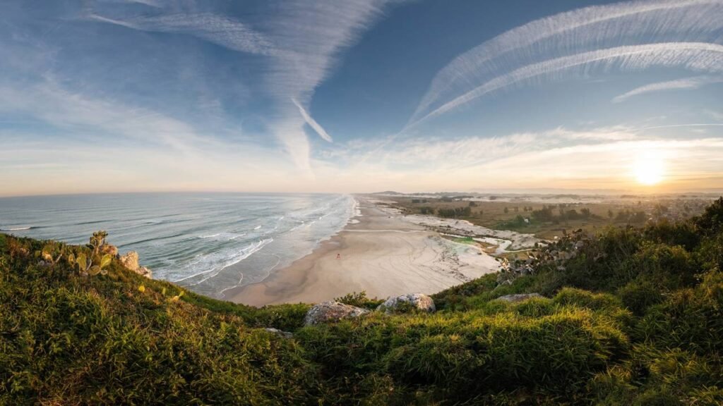 A Praia Grande é o ponto de encontro central, com calçadão largo e excelente estrutura de quiosques e restaurantes. Já a Prainha (ou Praia do Meio) oferece um gramado verdejante ideal para piqueniques e para observar o sol se pondo atrás da silhueta das montanhas da Serra Geral.