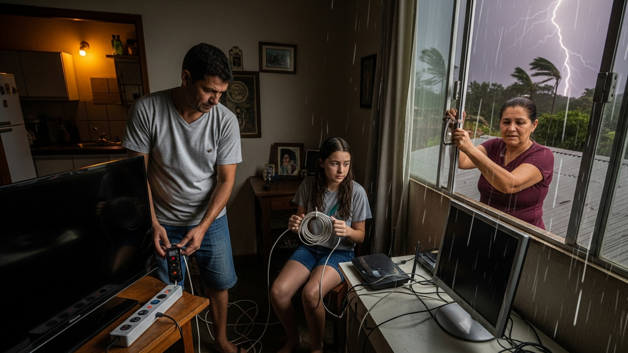 Uma prática importante é desligar eletrodomésticos mais sensíveis, como televisores, computadores e roteadores, principalmente em locais com histórico de queda de energia ou picos de tensão. Sempre que possível, esses aparelhos devem ser retirados da tomada durante tempestades, complementando o uso de filtros de linha de boa qualidade e protetores contra surtos elétricos para atenuar os efeitos de descargas atmosféricas.