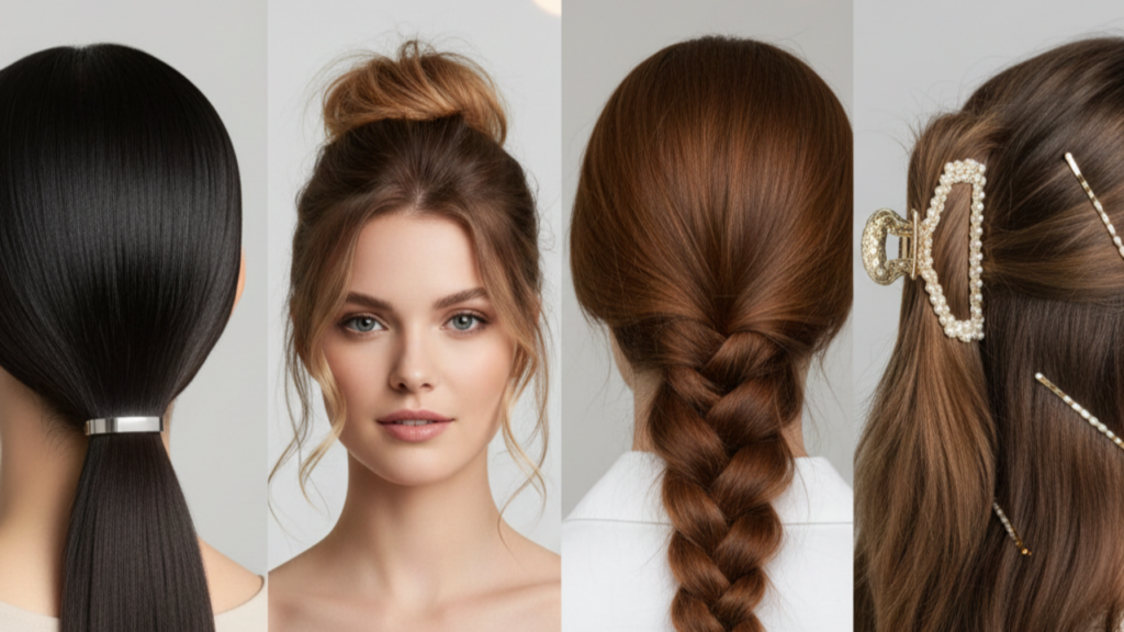 - Uso de piranhas, presilhas metálicas ou lenços para valorizar penteados básicos.