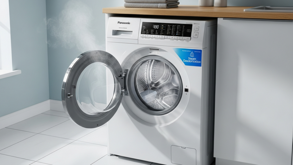 A máquina utiliza vapor em alta temperatura para reduzir presença de alérgenos, indicado para lares com crianças ou pessoas sensíveis. O vapor atua antes ou durante a lavagem, variando conforme o ciclo escolhido.