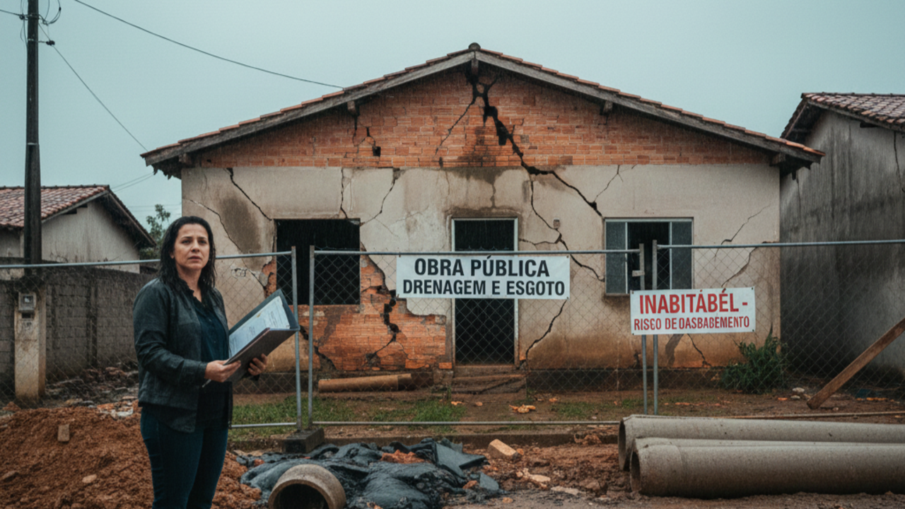 Em um bairro simples do interior de São Paulo, a rotina da auxiliar de enfermagem Ana Beatriz Silva, de 39 anos, virou de cabeça para baixo após uma obra pública de drenagem e esgoto feita pela prefeitura. Moradora do mesmo terreno há mais de vinte anos, ela viu sua casa, construída com esforço ao longo de uma década, ser declarada inabitável por risco de desabamento, depois que começaram a surgir rachaduras profundas, infiltrações, afundamento do piso e retorno de esgoto logo após o início das intervenções na rua.