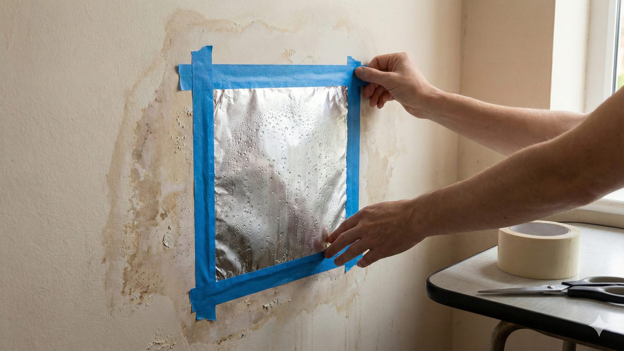 O teste do papel alumínio ajuda a identificar a origem da umidade nas paredes. Condensação no lado interno indica vapor e má ventilação; no lado da parede, aponta infiltrações externas ou falhas de impermeabilização.