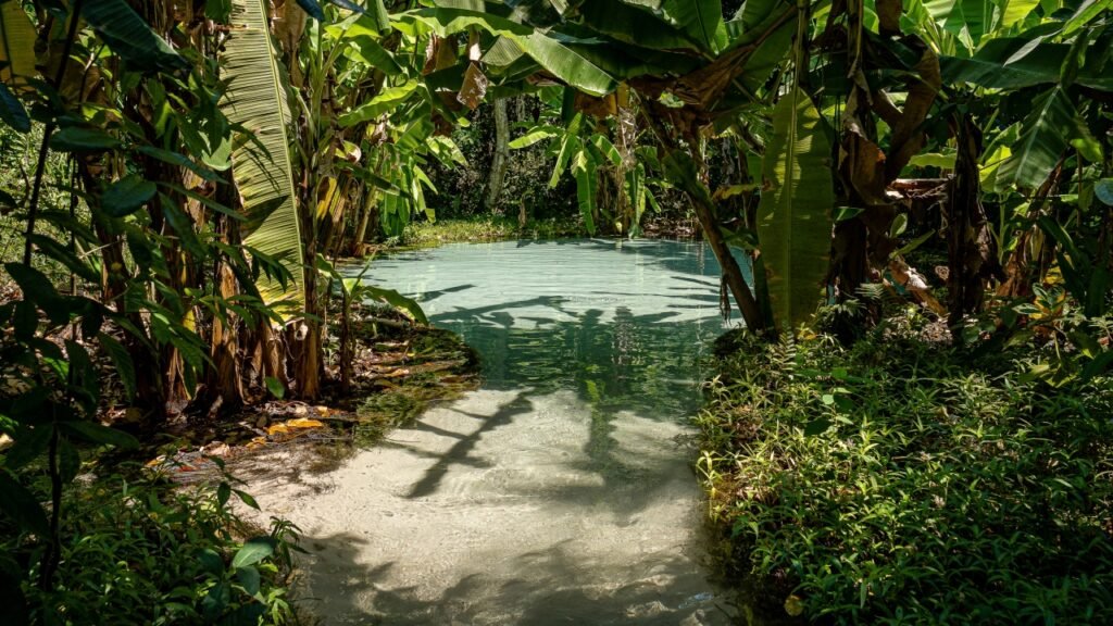 A grande magia da região reside nos famosos fervedouros, nascentes onde a água brota do lençol freático com tanta pressão que impede o banhista de afundar, fenômeno chamado de ressurgência. O Fervedouro do Ceiça e o Fervedouro Bela Vista são paradas obrigatórias, proporcionando a sensação única de flutuar sem esforço em piscinas naturais de azul intenso cercadas por bananeiras.