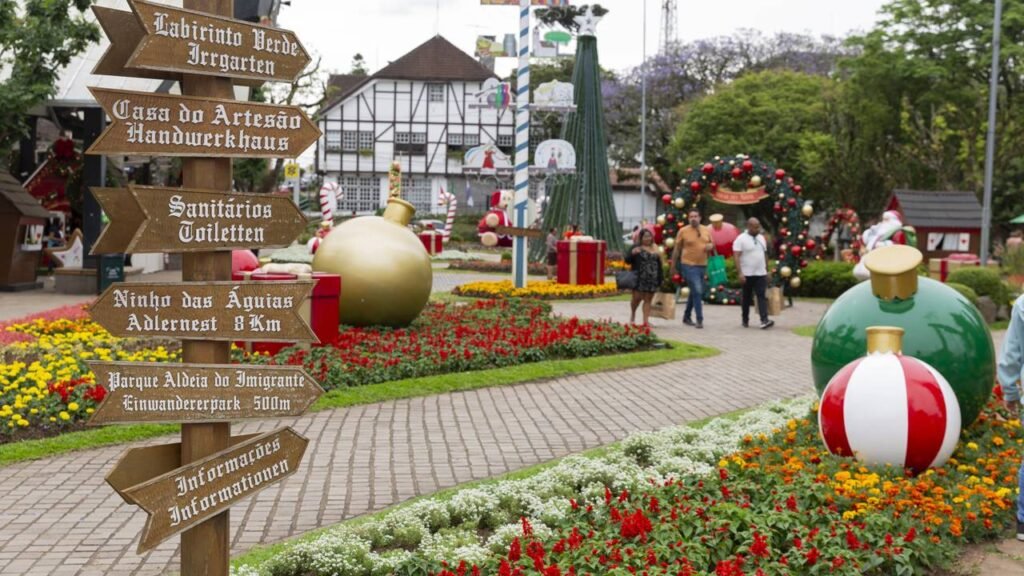 A Praça das Flores serve como o coração da cidade, abrigando o famoso Labirinto Verde, onde os visitantes se divertem entre cercas vivas em um desafio de orientação. No Parque Aldeia do Imigrante, a história ganha vida através de construções em enxaimel que transportam o público para o cotidiano dos colonizadores europeus.