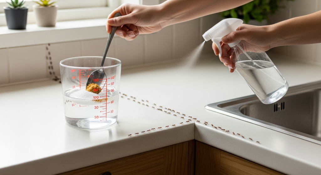 Para formigas, o uso é direto: a solução é borrifada nas trilhas visíveis, cantos de pia, rodapés, janelas e quinas de armários. Já para baratas, a mistura pode ser usada em alimentos atrativos, como pão ou bolo seco, posicionados em locais estratégicos para funcionar como isca.