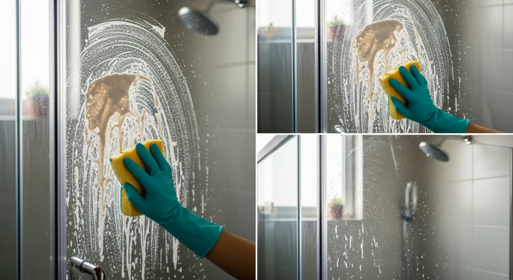 A palavra-chave central desse tema é limpar box de banheiro, especialmente quando o foco está em manchas que resistem à limpeza convencional. A fórmula caseira mais conhecida reúne três ingredientes comuns: bicarbonato de sódio, detergente neutro e álcool, formando uma espécie de pasta líquida.